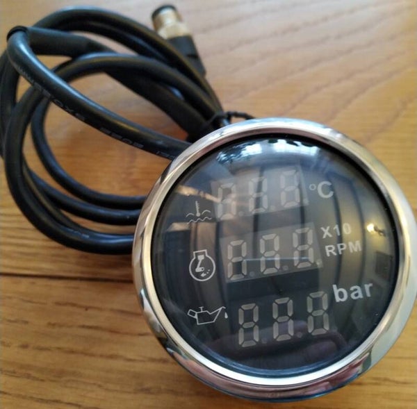 NMEA 2000 digital 2 inch triple gauge in black Tacho, Temp, Pressure