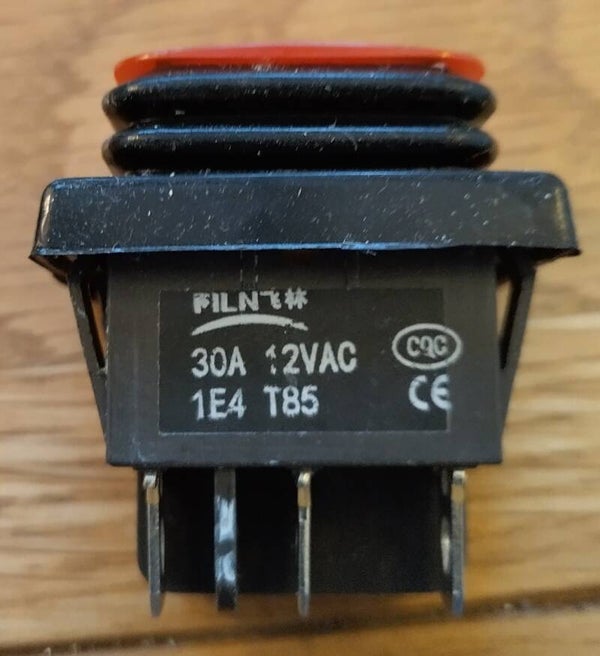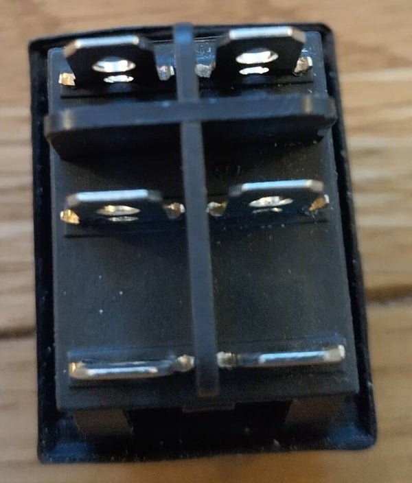 This is a large 27mm by 22mm, heavy duty easy to use with a gloved hand, six pin double action rocker switch.